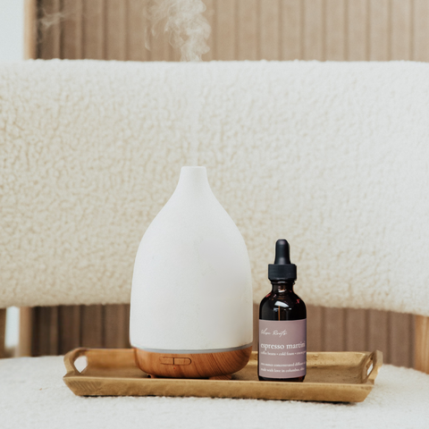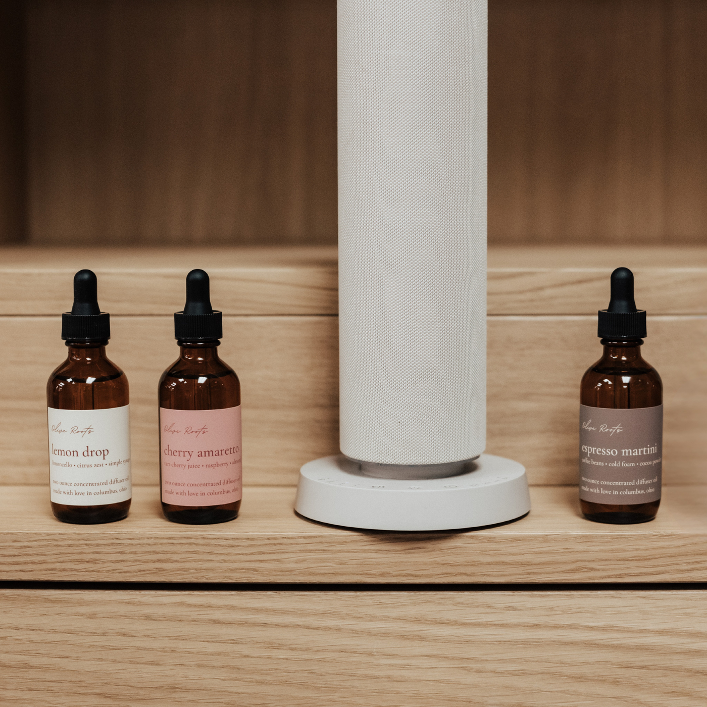 A 2 ounce blend of pure essential and fragrance oils designed for any water or waterless electric diffuser. In a water based diffuser, add 3-5 drops to water and adjust for your ideal scent. This can also be used in a waterless diffuser, simply fill the refillable bottle in waterless diffuser with scent (it does not need to be diluted). Not skin safe. Electric diffusers can be purchased separately from any large home goods store.