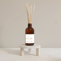 Reed diffusers are perfect for low-maintenance all day fragrance. Our reed diffusers come in our signature amber glass bottle (4oz) with 10 naturally-harvested rattan reeds that absorb and slowly release fragrance. Scent lasts 4-6 months. They work best in small spaces like a bathroom or office.