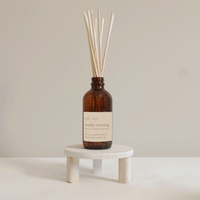 Reed diffusers are perfect for low-maintenance all day fragrance. Our reed diffusers come in our signature amber glass bottle (4oz) with 10 naturally-harvested rattan reeds that absorb and slowly release fragrance. Scent lasts 4-6 months. They work best in small spaces like a bathroom or office.